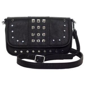 Sourpuss Aimee Clutch Purse Crossbody Black w/ Silver Studded Punk Emo