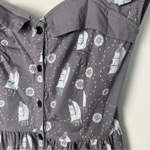 Sourpuss Retro Pinup Mini Dress Gray Sailing Ships Nautical Beach