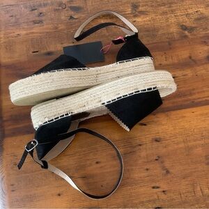 South Beach Black Suede Jute Ankle Strap Espadrilles New Sz 10