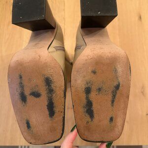 Purchased in 2022. Worn condition with scuffs. Have been worn about 10-15 times. Has scuffing to bottom soles and inner heels.