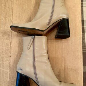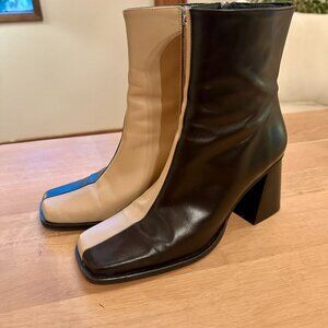 South Bicolor Stone Beige Black Leather Ankle Boots Size 41 Size 10-10.5