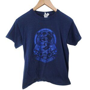 South Dakota Skull & Piston Graphic Tee 100% Cotton Blue Youth Medium