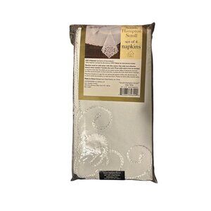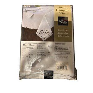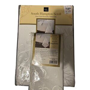 South Hampton Scroll Easy Care White Tablecloth & 4 Napkins Set oblong