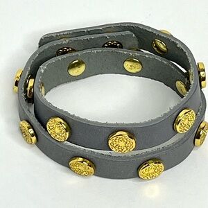 South Hill Designs Studded Leather Double Wrap Bracelet Gold Tone Gray