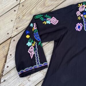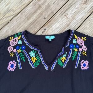 South Main Women's Black Embroidered 3/4 Sleeve Boho Top Size 1X-2X