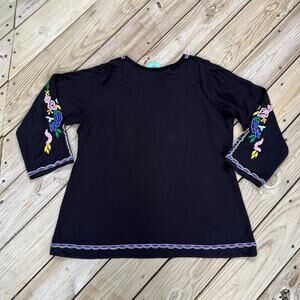 South Main Women's Black Embroidered 3/4 Sleeve Top Size 1X-2X