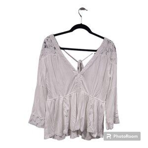 South Moon Under Juniper Blu White Long Sleeve Lace Top Size Small - 3FOR$25 -