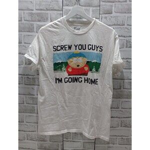The South Park Graphic T-shirt is a vintage style shirt featuring the character Cartman in a graphic print design. Made of comfortable cotton material, this crew neck shirt is machine washable and suitable for all seasons. With a regular fit and a size M, it is a classic piece for any fan of the Comedy Central animated series. Perfect for those who enjoy a bit of humor and nostalgia, this shirt embodies the 90s retro aesthetic with its Y2K-inspired design.