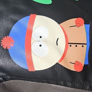Stylish varsity jacket in black with South Park character patches. Perfect for fans looking to add a unique touch to their wardrobe.