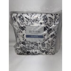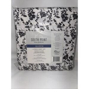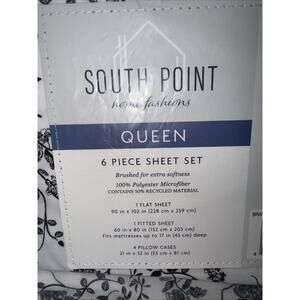The South Point Home Fashions Microfiber 6-piece Queen Sheet Set in Branches Floral is a stylish and comfortable addition to any bedroom. Made from soft microfiber material, this set includes a fitted sheet, flat sheet, and four pillowcases with a beautiful floral pattern in black. It is designed to enhance the décor of your bedroom with its elegant design, making it a perfect choice for those looking to add a touch of floral charm to their bedding.