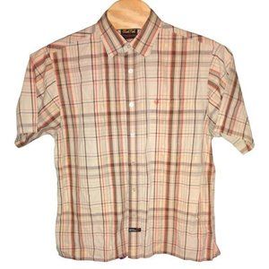 South Pole Button Down Men's Brown and Gold Plaid Short Sleeve Shirt (L)
