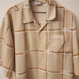 South Pole Hip Hop Camp Plaid Logo Tan Short Sleeve Shirt Mens XL