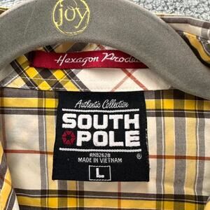 South Pole Mens Large Plaid Long Casual Button Up Shirt Comfort Style Work