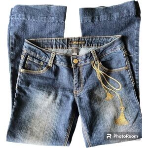 South Pole Women Blue Jeans Flared Bootcut Mid Rise Gold Embroidery Size 11 juniors