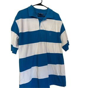South Pole Men's Blue & White Awning Stripes Short Sleeve Polo Shirt Size 2XL