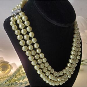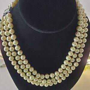 South Sea Shell Light Yellow Necklace 8 mm - 17, /18/19 in Triple …
