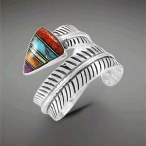 Native Multi-Gemstone Feather Ring 925 Sterling Silver Size 7 can be adjusted.