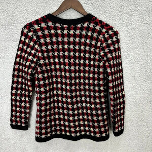 South Wool Cardigan Womens Medium Houndstooth Hand Loomed Wool Vtg Retro Preppy