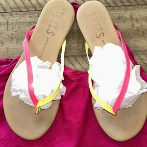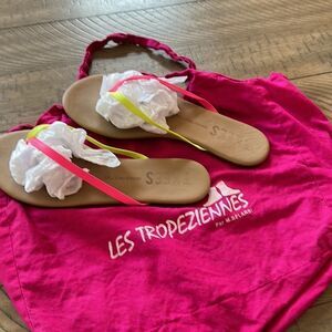 South of France 🇫🇷 Chic! Neon Pink & Yellow Chic Les Tropeziennes Sandals 🩴