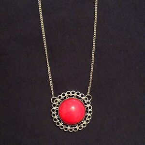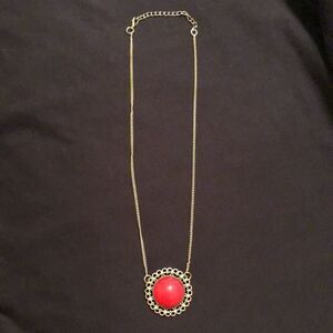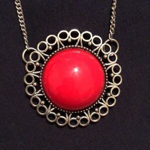 Southern Beautiful Red Pendant Silver Tone Necklace
