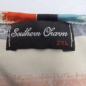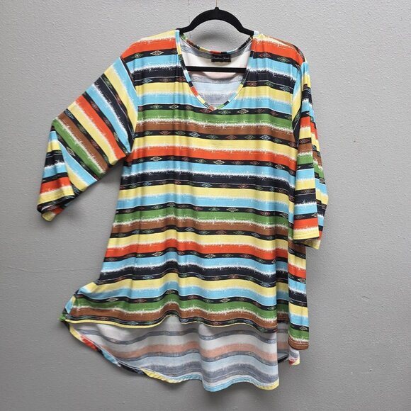 Southern Charm Shirt Womens 2XL Multicolor V Neck Tunic Aztec Stripe 3/4 Sleeve