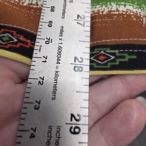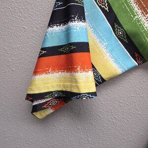 Design: Multicolor horizontal stripes with Southwestern/Aztec-inspired diamond motifs