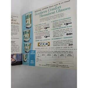 This vintage booklet is a must-have for any Southern Comfort fan or collector. It features 44 favorite party drinks and recipes that will transport you back to the 1960s. The booklet is an original, multi-colored magazine insert that showcases the brand's unique distillery theme.