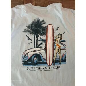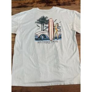 Southern Cross Men's White Beach Print Short Sleeves T-Shirt Size