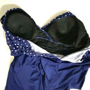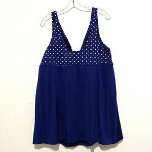 Southern Expressions Swim Dress 24W Blue Polka Dots One Piece Swimsuit