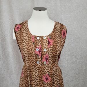 Southern Expressions Vtg Leopard Tropical Floral Dress Women's Plus Size 24W