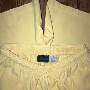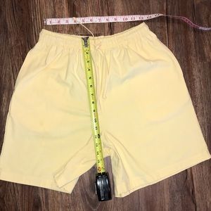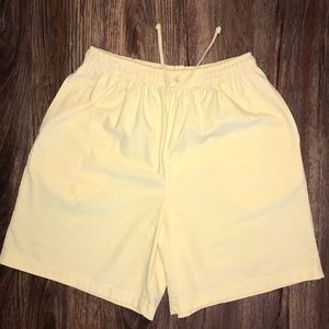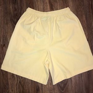 Great 90’s vintage high rise shorts. These are a nice shade of yellow, sunny but not too bright. Like new, they look like never worn. The drawstring works and goes all the way around so you can cinch them up and get a great gathered look. Shorts have deep pockets and the hem looks good rolled up or down. See pictures for measurements.