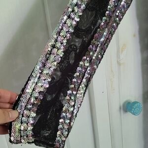 Southern Fried Chicks Nylon Sequin Open Front Longsleeve Duster