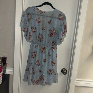 Southern Fried Chics Blue Floral Cottegecore Flutter Sleeve Dress Size Medium