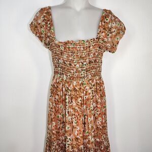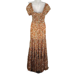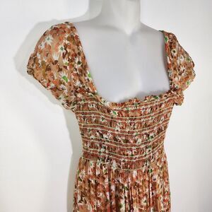 Southern Fried Chics Maxi Dress Small Orange Floral Cottagecore Smocked Tiered