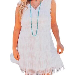 Southern Fried Chics White Fringe Short Dress V Neck
