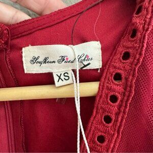 Southern Fried Chics Red Lace Maxi Dress XS NWT Romantic Boho Sheer Overlay NWT