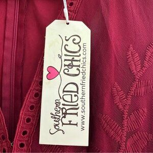 Southern Fried Chics Red Lace Maxi Dress XS NWT Romantic Boho Sheer Overlay NWT Step out in style with this elegant burgundy lace maxi dress. Perfect for any occasion, this dress features intricate lace detailing and a flattering silhouette. Ideal for making a statement. Women's lace skirts are made of 65% polyester and 35% cotton, which is soft and breathable, skin-friendly and comfortable The summer lace maxi dress features a plunging V-neckline that accentuates your collarbone.The hollow high-waisted design is stylish and elegant The semi-lined and slim waist of the flowing ankle-length skirt makes people look slimmer and have better proportions The chic lace embroidery design of the flower lace maxi dress creates a glamorous and elegant look that is very sexy and flattering Women's maxi dresses are suitable for weddings, cocktails, dates, formal occasions, clubs, parties, beaches, holidays, shopping, casual everyday wear, etc