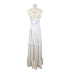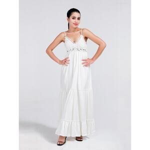 Southern Fried Chics White Lace Boho Maxi Dress Ballet Straps | Tiered Skirt | L