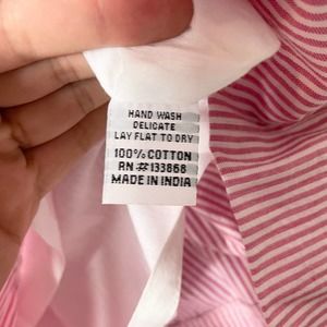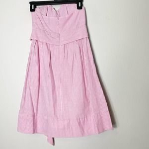 Southern Frock strapless dress. Pink and white striped material. Sweetheart neckline. Side pockets. Ties at the waist. Condition: Used
