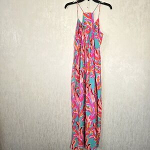 Southern Frock Womens S Maxi Dress Strappy Pink Aqua Tropical Resort Beach Vacay