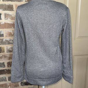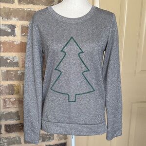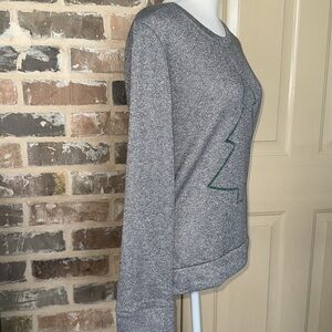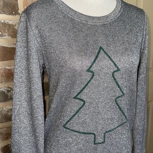Southern Grace silvery gray Sparkle Sweater Crewneck Sweatshirt. Long Sleeves, banded cuffs and hem and a simple green tree detail. Size Small. Perfect for cozy fall or winter holiday events. Poly/Linen blend. Approximate measurements in photos. Excellent condition. Never worn.