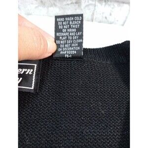 The Southern Lady Black Christmas Embroidered Ugly Sweater Vest in size Large is a vintage piece perfect for the holiday season. This sleeveless vest features a V-neckline and is made from a tight-knit blend of ramie and cotton. The black sweater is adorned with embroidered accents and beadwork, adding a touch of festive flair. Ideal for parties or casual wear, this unique piece showcases a classic fit with a graphic print design that captures the spirit of Christmas and holiday cheer.