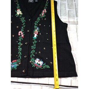 Southern Lady Black Christmas Embroidered Ugly Sweater Vest Size Large VTG