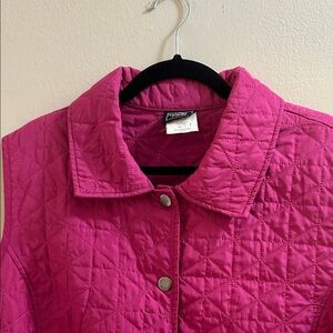 Chic quilted vest in vibrant fuchsia. Ideal for layering and adding flair.