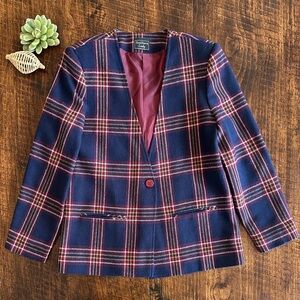 Southern Lady | Vintage Wool Blend Academia Plaid One Button Blazer, Size 9/10