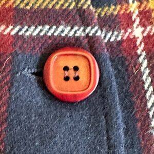 Nice vintage preowned condition with no flaws to note. Polyester/Wool blend. Fully lined. One button closure and two slit pockets on the front. Collarless design. Made in the USA.
