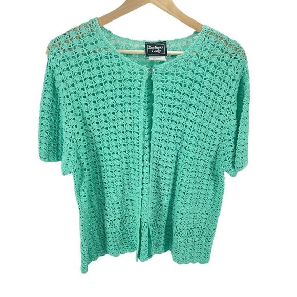 Southern Lady Women's Crochet Open Knit Cardigan large turquoise green