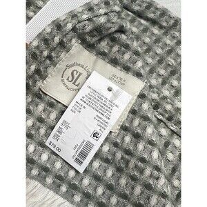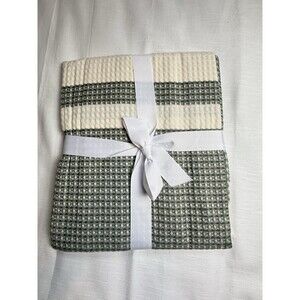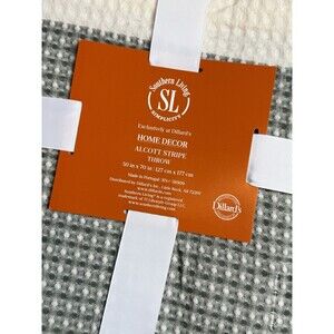 Measuring 50 x 70 inches, this blanket is a great addition to any room. It is perfect for draping over a bed or curling up on the couch. The fringe detailing adds a touch of sophistication to this blanket, making it a great gift for any occasion. A very lightweight woven striped jacquard fabric thats made of 100% cotton. Comes from a smoke free home. Brand new with tag, but there is a very small snag which is shown in last picture. Retail cost $79.