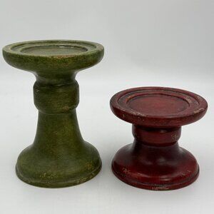 Southern Living At Home Santorini Pillar Candle Holders Green 7" & Red 4" No Box