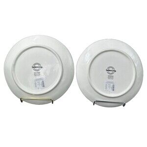 This is a set of two Southern Living Christmas Santa stoneware salad plates in a multicolor design. Each plate measures 8.5 inches in diameter and comes with tags attached. Perfect for adding festive charm to your table décor during the holiday season. Microwave and dishwasher safe.